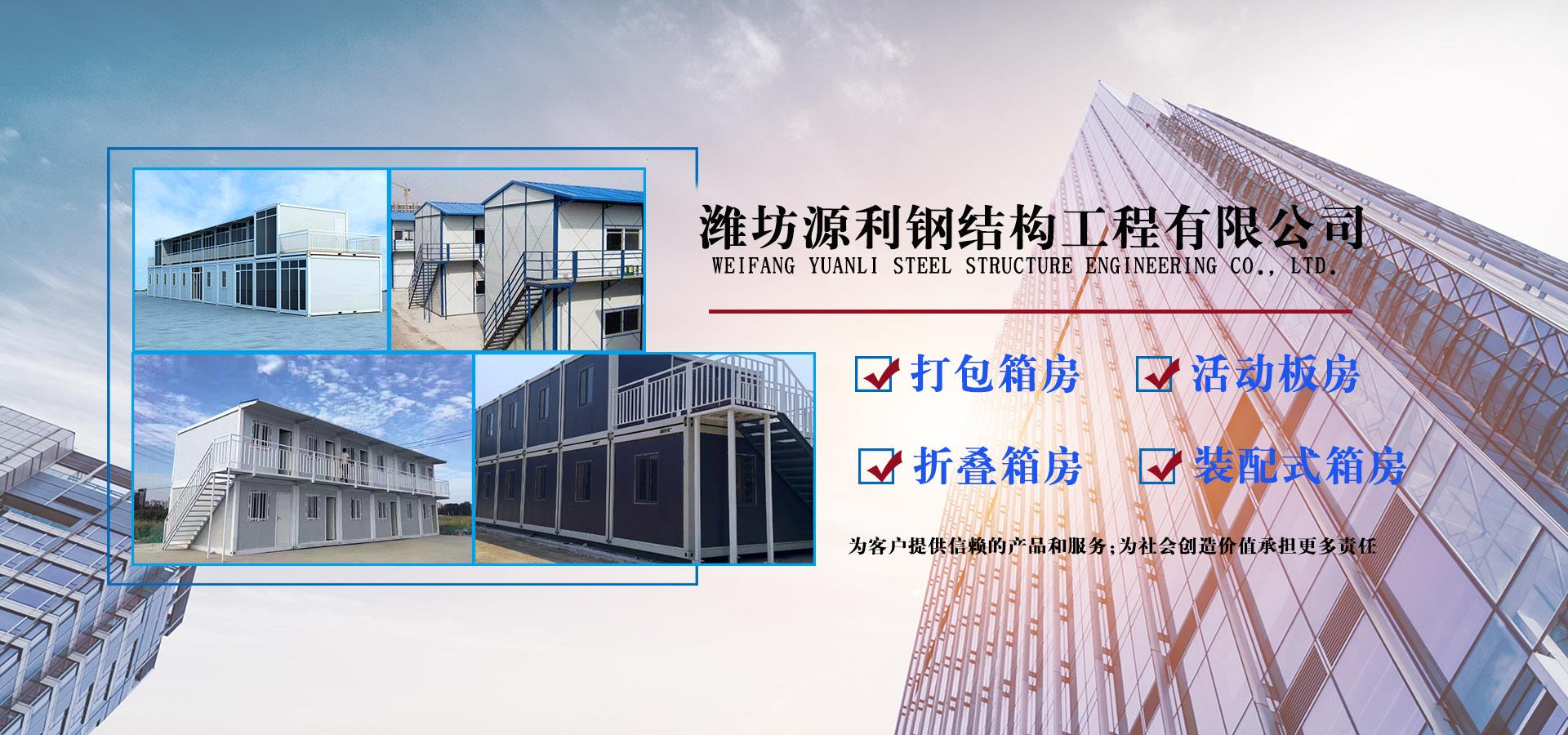 濰坊源利鋼結(jié)構(gòu)工程有限公司成立于2015年,是一家從事活動(dòng)房屋,鋼結(jié)構(gòu)設(shè)計(jì)、制作、安裝為一體的公司。公司坐落于風(fēng)景秀麗的藍(lán)寶石之鄉(xiāng)昌樂(lè)開(kāi)發(fā)區(qū),占地約60畝,年加工生產(chǎn)能力到40萬(wàn)平米,現(xiàn)已發(fā)展成本地較大的鋼結(jié)構(gòu)企業(yè),同時(shí)也已跨入集成房屋研發(fā)、推廣企業(yè)行列。公司配備了全套的箱房流水線生產(chǎn)設(shè)備,包含了全自動(dòng)冷彎成型設(shè)備、流水自動(dòng)涂裝線、沖壓型材生產(chǎn)線以及全套的配套設(shè)備,標(biāo)準(zhǔn)化、模具化生產(chǎn)加工,年生產(chǎn)5000套打包箱,產(chǎn)品保障。 公司主要產(chǎn)品有:鋼結(jié)構(gòu)工程加工、制作、安裝;各類活動(dòng)板房、打包箱房、裝配式箱房、折疊箱房、圍擋、料棚、異型H型鋼、屋面板、墻面板、樓承板,C型鋼,Z型鋼;馬路隔離護(hù)欄等相關(guān)產(chǎn)品。